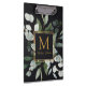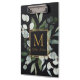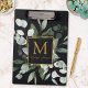 Introducing our Monogram Watercolor Tropical Eucalyptus Black Clipboard. Featuring watercolor illustration of greenery bouquet arrangement with customizable monogram on the middle in gold color. Suitable as gift for teacher appreciation day or for nature lovers
