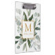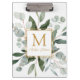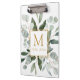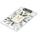 Introducing our Monogram Watercolor Tropical Eucalyptus Leaves White Clipboard. Featuring watercolor illustration of greenery bouquet arrangement with customizable monogram on the middle in gold color. Suitable as gift for teacher appreciation day or for nature lovers