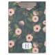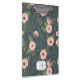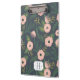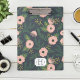 Nossa prancheta floral chic monogramada faz na moda no seu escritório ou em sua casa! Bonito pincelada e design marinho apresenta um padrão de flores cor-de-rosa coral e folhas verdes exuberantes em um fundo azul enfumaçado e profundo da meia-noite. Personalize com seu monograma inicial de solteiro em azul marinho de meia-noite correspondente ou exclua o elemento inicial de amostra, pontos decorativos e crachá branco se não estiver personalizando.