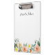 Essa bela prancheta floral é fabulosa para manter suas anotações. Com coral macio, pêssego, flores de aquarela creme e guiões modernos e fontes de bloqueio para personalizar seu nome, isso adicionará um toque maravilhoso ao seu escritório.