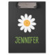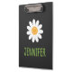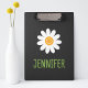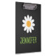 Esta prancheta divertida apresenta uma ilustração de uma margarida branca simples com um nome personalizável na frente. A parte de trás apresenta um xadrez cinza e preto clássico para um toque único. Modifique o texto para criar um presente único para familiares, amigos ou colegas de trabalho. Perfeito para uso em casa ou em escritórios corporativos.