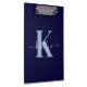 Esta simples e elegante área de transferência azul de marinho 12,5 x 9 com seu primeiro nome em uma letra de script de tendência em branco digitada sobre sua primeira letra inicial em uma fonte moderna de boné em azul claro é perfeita para você. É na moda e moda e, no entanto, muito clássico. Será útil em tantas situações. Perfeito para o trabalho, casa, escola.