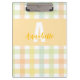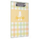 Uma mistura de padrão moderno de gingham, verde, amarelo e azul, cor de laranja claro, nome personalizado e inicial. As matizes de Pastel encontram linhas limpas, transformando um acessório de mesa do dia a dia em uma pequena peça de arte. Use a área de transferência para segurar esboços, planos de lições ou notas diárias enquanto adiciona personalidade ao seu espaço de trabalho. Projetada por Eria Daisy Art, é uma prática essencial com uma vibração criativa. Clique no botão editar para mover ou dimensionar o padrão e personalize com seu nome e inicial.