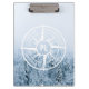 Compass star com uma foto de um nevoeiro numa floresta de primavera de inverno gelada com emblemas de desejo, natureza, viagem e exploração que são personalizáveis para que você possa escrever seus próprios textos. No centro da estrela está um monograma personalizado. Perfeito para os amantes da natureza, caminhantes e viajantes.