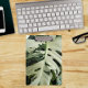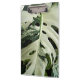 Mantenha todos os formulários e documentos organizados com esta prancheta acrílica que mostra a foto de uma folha de Monstera, verde e branca, variegada, comumente conhecida como Planta de Queijo Suíço. Imagem impressa em ambos os lados. Um design floral adorável!
