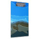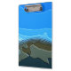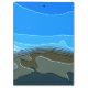 Um desenho abstrato azul vibrante de um topo de montanha e do céu.