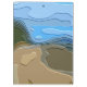 Um design brilhante e colorido abstrato de uma vista de montanha, com céu azul, rocha e árvores.