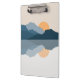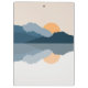 Abstrato de ilustração colorida do nascer do sol com montanhas azuis refletidas no lago