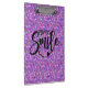 Adicione um toque de elegância e faísca à sua mesa com a nossa Área de Transferência Glitter de Na moda de Cute. Com um fundo brilhante e a mensagem de uplifting "Always Smile" com um smiley face alegre, esta área de transferência personalizada combina funcionalidade e talento. Perfeito para adicionar uma pop de cor e personalidade aos seus suprimentos de escritório, esta tendência e design único é ideal para profissionais, estudantes ou como presente personalizado. Adote o estilo e a positividade com esta prancheta moderna e artística que o mantém organizado de uma forma dinâmica.