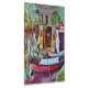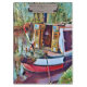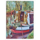 Uma design de arte bonito de um barco estreito ancorado em uma parte pacífica do canal.