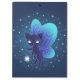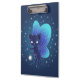 A whimsical illustration of a fairy-like fantasy creature that resembles a cat with colorful butterfly wings. The kitten is hovering in place holding a small star shaped lantern in its front paw.