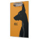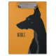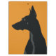 Um design de prancheta minimalista para donos de cães ou amantes que foi colocado em fundo amarelo. O design introduz uma silhueta de um Doberman preto acompanhado dos obrigados personalizáveis padrão.