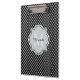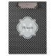 Adicione uma vibração moderna sofisticada ao estilo do seu escritório com esta prancheta de padrão quatrefoil preto-e-branco com um monograma enquadrado por na moda. Personalize este design de na moda adicionando seu nome e monograma inicial.