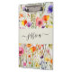 Área de transferência elegante com um padrão de flor silvestre de aquarela. Personalize com seu nome.