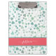 Área de transferência de padrão floral moderno de menta e coral com um nome de script elegante com letra de mão em uma fita de coral chic. Personalize com seu nome.