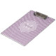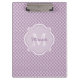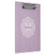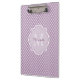 Adicione uma impressão moderna sofisticada a seu estilo do escritório com esta prancheta roxa e branca na moda da luz - do quatrefoil do teste padrão com um monograma moldado elegante. Personalize este design à moda adicionando sua inicial conhecida e monogrammed.