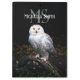 Foto de retrato animal de uma majestosa coruja de neve em um galho com um nome personalizável monograma acima.