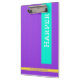 Mantenha as suas notas e documentos organizados com esta Área de Transferência Personalizada Trendy Purple. Adicione seu nome em segundos, escolha de diferentes tamanhos e estilos e desfrute de um design durável perfeito para uso escolar, no escritório ou doméstico. Com a impressão e a entrega rápidas, esta moderna área de transferência também faz um presente bem personalizado.