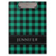Área de transferência do Office com um impressão de nome personalizado em um padrão de xadrez gingham verificado, verde e preto, na frente e no verso. Material de papelaria correspondente disponível. Veja a coleção de cheios abaixo e veja o Dots & Stripes Pattern Design Studio para mais artigos de escritório e material escolar personalizados.