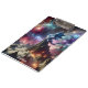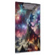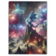 Uma imagem fabulosa de fantasia de um dragão azul-prateado num pico de montanha, contra uma galáxia de estrelas e nebulosas. Perfeito para quem ama fantasia e dragões.