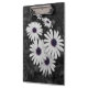 Esta imagem mostra um aglomerado de margaridas com pétalas brancas e polos púrpuros-azuis em greve. O fundo e a folhagem estão em preto-e-branco, criando um efeito colorido seletivo que enfatiza as cores vívidas dos centros das flores. O contraste entre os arredores dessaturados e as delicadas flores dá à imagem uma qualidade artística, quase surreal, destacando a beleza e a complexidade da natureza.