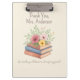 Adicione charme e funcionalidade ao seu espaço de trabalho com esta bela área de transferência, com uma ilustração de aquarela suave de livros empilhados revestidos com um delicado buquê floral pastel. Um presente perfeito para professores, professores, bibliotecários ou qualquer pessoa que aprecie uma mistura de organização e elegância. Personalize-o com o nome do seu professor (por exemplo, Senhora Deputada Anderson) ou com uma citação motivacional para criar uma Apreciação de Professores ou um presente de Volta à Escola. Quer seja usado na sala de aula, no escritório, ou em casa — esta área de transferência torna a papelada um pouco mais alegre. 📋 Recursos: Cartão de durão de alta qualidade com impressão de cor frontal cheio de Watercolor stack e trabalho de arte floral Opção para personalizar com nome ou mensagem curta Clip Padrão para prender papéis Ideal para professores, treinadores, estudantes ou profissionais de escritório Inspire, Ensine e mantenha-se organizado — tudo isso com um toque de beleza artística.