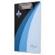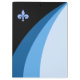 Caligrafia editável, ondas de abstrato em tons azuis e flur de lis. Texto apenas no lado frontal.