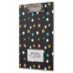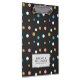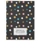 Cores e tamanhos aleatórios modernos padrão de pontos com fundo de cinza escuro. Informações de texto personalizáveis.