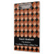 Esta prancheta é um obrigado único e divertido que você oferece para o treinador da equipe de basquete! Na frente - Um padrão de basquete com fundo preto e letras brancas - muito brilhante e atraente para os olhos. Nas costas - o padrão de basquete. Seu treinador de basquete vai adorar! O texto de exemplo na frente tem espaço para 3 linhas de texto personalizado, incluindo o nome, que podem ser facilmente modificadas ou apagadas. O cartão de saudação é o zazzle product 13754399429144818. Todos os Direitos Reservados © 2014 Alan & Marcia Socolik.