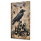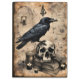 Um corvo é pregado sobre um crânio assentado em uma pilha de livros, cercado por velas. Símbolos arcanos e texto ilegível em um velho pergaminho grungey completa a ilustração de um livro de feitiços. Gótico, assombroso, e perfeito para aqueles que caminham do lado mais escuro.