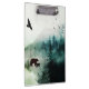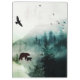 Num dia de outono sombrio, um urso-mãe e filhote caminham através de uma paisagem montanhosa florestal, enquanto uma águia sobe sobre cima, e outras aves voam à distância. Lindo, evocativo, perfeito para quem ama o exterior e a natureza.