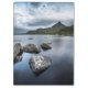 Fotografia paisagística de um lago e montanha em Vestvågoya, uma ilha do arquipélago de Lofoten, no norte da Noruega, na Escandinávia.