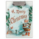 Uma ilustração antiga de Natal feliz, um interessante retro vintage santa claus. Esta bela ilustração de natais vintages tem uma bela pequena Cláusula Santa segurando um cartaz que diz Um Feliz Natal. Esta é uma pintura doce e colorida do Elfo Velho Jolly!
