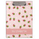 Padrão de morango rosa com nome personalizado. Faz um presente bonito para as meninas. Projetado e ilustrado por Designs Kristine Lee. Para mais informações sobre a nossa marca, visite www.kristineleedesigns.com