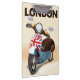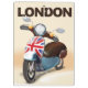 Patinete de solteiros de Londres. Motomoto retrógrado britânico de Inglaterra com bandeira da União Britânica. Tomada de Londres, poster de férias na Inglaterra.