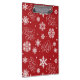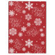 Ilustração de texto de paz e alegria com decoração de flocos de neve brancos em fundo vermelho