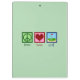 Sinal de paz, coração, e campo de golfe verde num bonito fundo de golfe verde. Um belo presente de golfista.