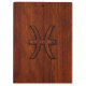 Um Sinal Zodiac Peixes renderizado em um fundo design de impressão de grão de madeira de Mahogany. Um design clássico para uma ideia de presente personalizada de excelente. Use o link "Perguntar a este Designer" para entrar em contato conosco com suas solicitações especiais de design ou para obter assistência com suas necessidades de personalização.