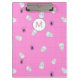 Padrão de xadrez rosa desenhado à mão com crânios e aranhas, perfeito para uma prancheta feminina coquete do Dia das Bruxas personalizada com sua própria prancheta inicial.