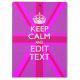 Os seus personalizados mantêm o provérbio calmo em uma decoração vibrante do jaque de união do rosa quente. Personalizado mantem o estilo calmo dizer em esse de um presente amável. Cómico ou lunático tente sobre suas palavras criativas em duas linhas de texto editáveis. Recorde usar letras PRINCIPAIS para os melhores resultados.