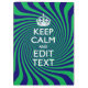 Sua personalização fica calma dizendo em uma vibrante decoração azul e verde. Um estilo "Manter Calmo" personalizado dizendo em um presente gentil. Humorístico ou caprichoso experimente suas palavras criativas em duas linhas editáveis de texto. Lembre-se de usar letras CAPITAL para obter melhores resultados. Use o link "Perguntar a este Designer" para entrar em contato conosco com suas solicitações especiais de design ou para obter assistência com suas necessidades de personalização.
