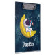 Dream big and aim for the stars with this adorable and customizable Clipboard design! Featuring a cute astronaut relaxing on a yellow crescent moon while holding a toy rocket, set against a starry night sky. Easily add your child's name or a motivational quote to make this Clipboard uniquely theirs for the 'Back To School' season. A fun and inspiring way to stay organized!