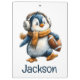 A fun and cozy winter design featuring a cheerful penguin dressed in warm earmuffs and a scarf, proudly holding a football. This playful illustration captures the excitement of young athletes who love the game even in snowy weather. With the option to personalize it with your child’s name, this design becomes a special keepsake that celebrates both sports passion and seasonal charm. Perfect for home and living products, it brings warmth, energy, and a touch of winter joy to any space — a delightful gift for little football fans.