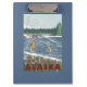O pescador da mosca - Wrangell, Alaska - poster das viagens vintage foi criado em 2007. Esta imagem descreve cenas de Wrangell, AK.