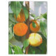 Uma bonito aquarela artística de pêssegos que crescem na árvore.
