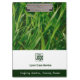 The Photo Lawn Care Promotional Logo & QR Code Clipboard is part of the Lawn Care Business Card & Marketing Items collection. Designed as a customizable template, the photo clipboard invites you to insert your service image, logo, company name, and motto. On the back is a scannable QR code with your website address and an invitation to your social media pages. The general branding colors are green and white.