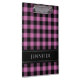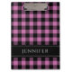 Área de transferência do Office com um impressão de nome personalizado em um padrão de xadrez gingham branco, cor-de-rosa e preto, na frente e no verso. Material de papelaria correspondente disponível. Veja a coleção de cheios abaixo e veja o Dots & Stripes Pattern Design Studio para mais artigos de escritório e material escolar personalizados.