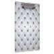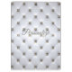 Couro branco pintucado com uma haste metálica ou percilizada, pontilhada com miçangas de ouro. Personalize por trás, se quiser.