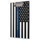 Mostre seu apoio com esta prancheta de bandeira americana, fina e azul, de polícia branca e negra. Personalize substituindo o nome da amostra pelo nome do seu próprio oficial, tanto na frente como no verso.