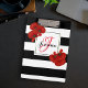 Belo design floral elegante com moldura de papoilas vermelhas em um fundo listrado preto e branco. Você pode personalizar o design do produto alterando o texto no campo fornecido. Você pode alterar o estilo, o tamanho e a cor da fonte usando o botão Personalizar.